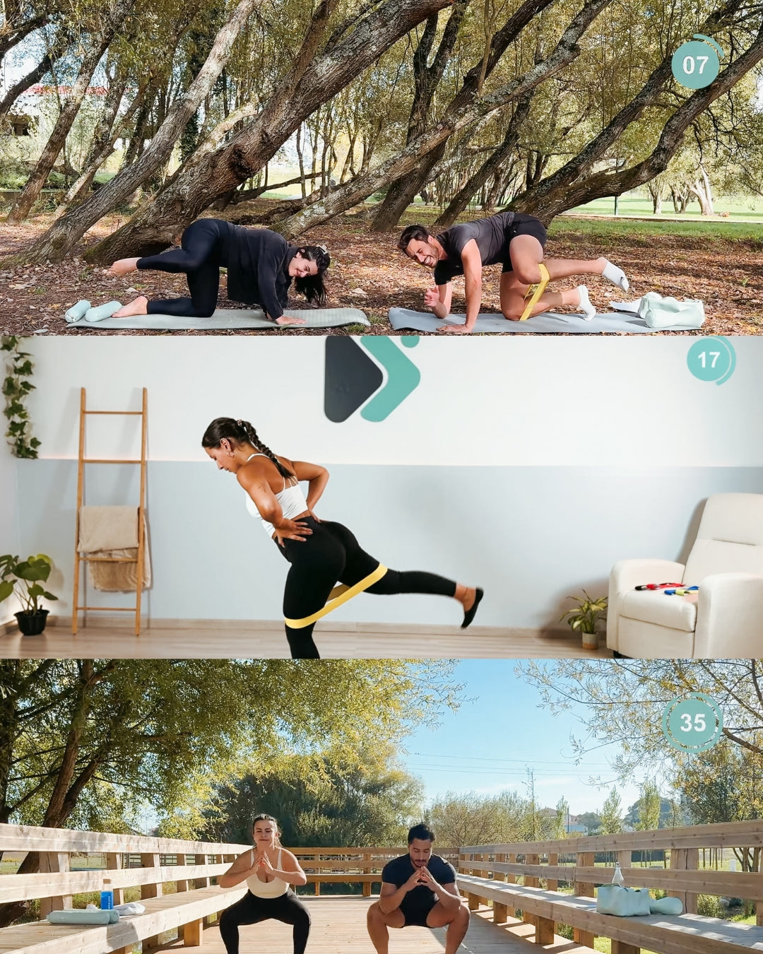 Treinos curtos (15–20 min), fáceis de seguir e para todos os níveis.